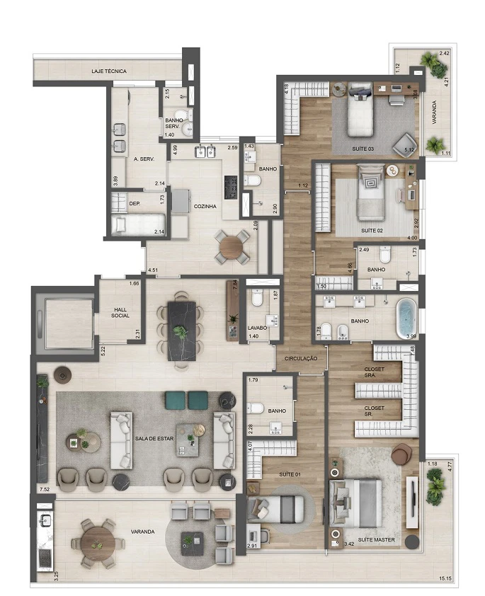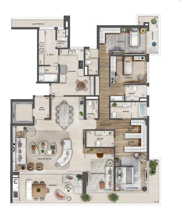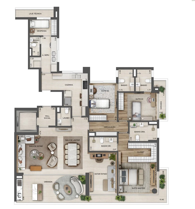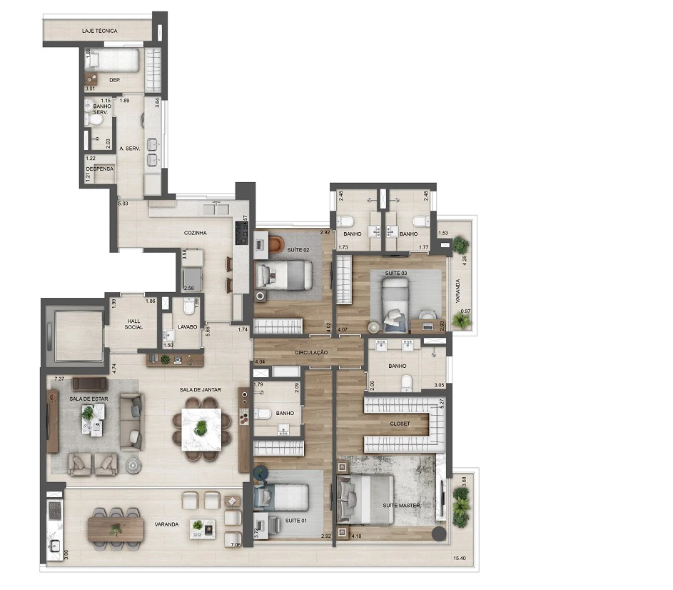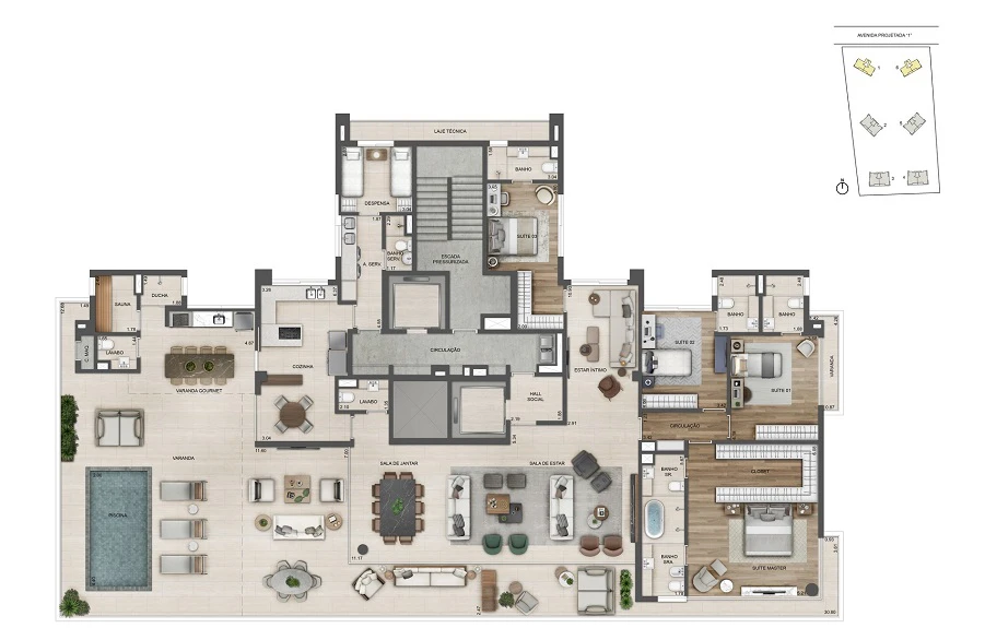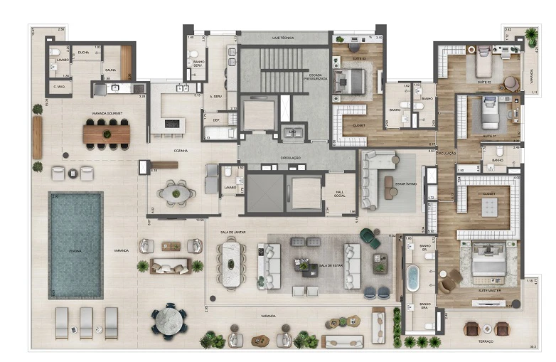 Coberturas Lineares com 4 suítes, 396m² até 547m².